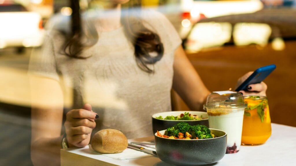Halfway through your meal, pause and ask yourself how your body feels. Are you still hungry? Are you satisfied? This kind of internal check-in can help you recognize genuine hunger and fullness signals rather than eating by distraction or habit.