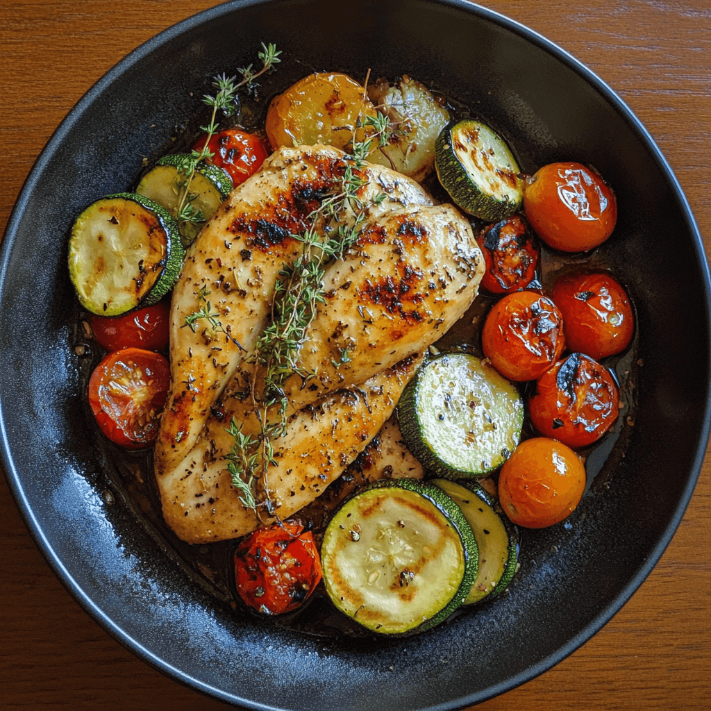 Want a quick, healthy dinner that doesn’t compromise on taste? Make this One-Pan Garlic Chicken with Veggies! In just 20 minutes, you’ll have a delicious, balanced meal on the table. The chicken is seasoned with aromatic herbs and spices, and vibrant veggies like zucchini, bell peppers, and cherry tomatoes provide flavor along with nutrition. With minimal prep and clean-up, this is as simple as simple can be, which is perfect for busy weeknights. It’s also a wonderful option if you want to eat healthier without sacrificing flavor. Get out your skillet and get ready for a speedy and tasty dinner!